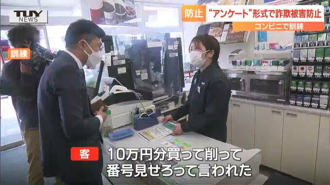 “アンケート”形式で特殊詐欺被害防止へ コンビニで実際の状況想定し訓練 2023年4月21日(金) 17:45 国内 特殊詐欺被害が相次ぐ中、21日、山形県長井市のコンビニエンスストアで被害防止に向けた訓練が行われました。電子マネーをだまし取られないためのポイントは?訓練は、警察官が高額の電子マネーを購入する客に扮し…