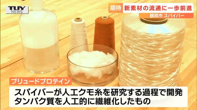 人工クモ糸の研究で知られる山形県鶴岡市のスパイバーが、そのノウハウを生かした新素材の流通に一歩前進です。