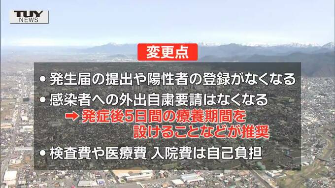 新型コロナ5類移行で変わること 検査費など自己負担に 5日間の療養期間を推奨など 2023年5月8日(月) 11:57 国内 5月8日から新型コロナの感染症法上の位置づけが5類になります。街では期待と不安の声が入り混じっています。新型コロナの感染症法上の位置付けは、8日から季節性インフルエンザと同じ5類に引き下げられました。こ…