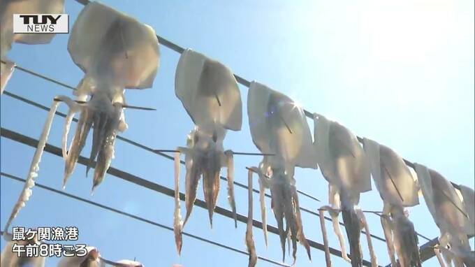 “イカのカーテン” 太陽の光と風を浴びて おいしいイカの一夜干しに 2023年5月12日(金) 17:49 国内 山形県鶴岡市の鼠ヶ関漁港ではイカの一夜干し作りが盛んに行われています。青空の下、太陽の光と、風を浴びて香りと旨みを濃縮していくイカ。12日、鼠ヶ関漁港では、朝8時から材料となるスルメイカを丁寧にさばい…