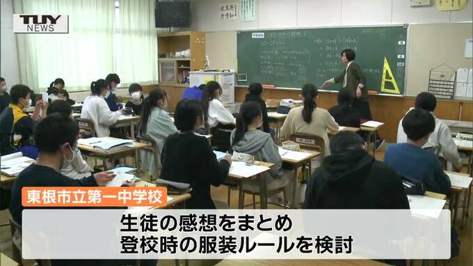 東根市立第一中学校では、生徒の感想をまとめ、今後登校時の服装ルールを検討するということです。