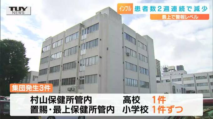 山形県内のインフルエンザ患者数は185人で、2週連続で減少しているものの、最上保健所管内では警報レベルが続いています。