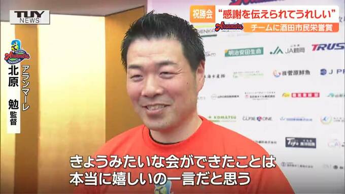 アランマーレ・北原勉監督「善くて強いチームで勝って地元のみなさまと勝利の味を分かち合いたいとこれをずっと言ってきました。きょうみたいな会ができたことは本当に嬉しいの一言だと思う」