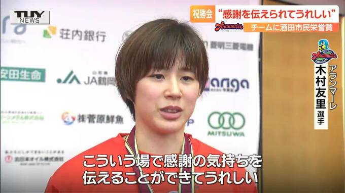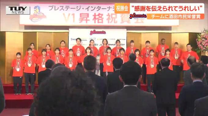 悲願のトップリーグ昇格を果たしたバレーボール女子のプレステージ・インターナショナルアランマーレに、山形県酒田市から酒田市民栄誉賞が贈られました。