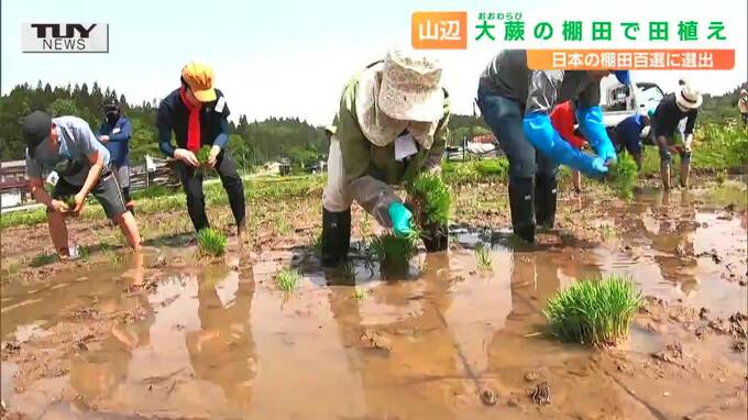 日本の棚田百選“大蕨の棚田”で楽団員らが田植え 2023年5月22日(月) 17:54 国内 日本の棚田百選に選ばれている山形県山辺町の大蕨の棚田で22日、田植えが行われました。報告・鈴木竜弘「標高350メートル、山辺町・大蕨の棚田、今年も田植えの季節を迎えました。手植えをしているのは、いつもは…