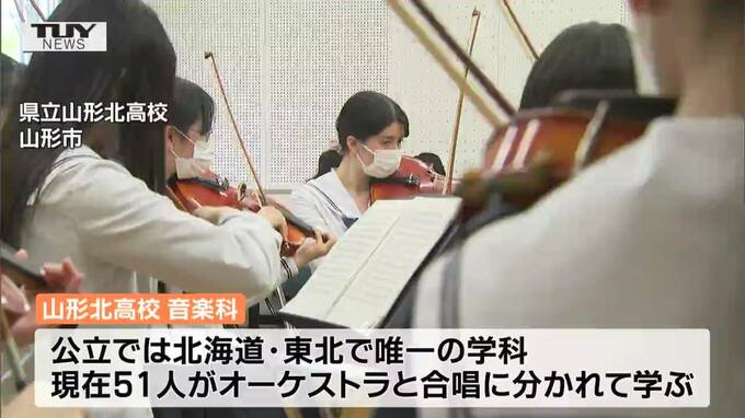 県立山形北高校音楽科は、公立では北海道・東北で唯一の音楽専門の学科で、現在は51人がオーケストラと合唱に分かれて学んでいます。