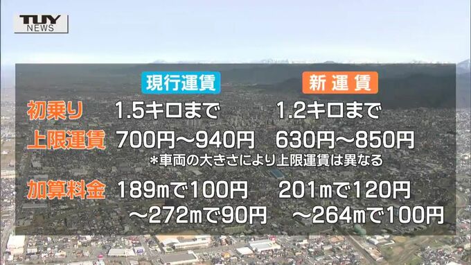 タクシー運賃改定 山形市など3市1町で実質値上がりに 2023年5月31日(水) 11:33 国内 山形市など3市1町では、5月31日からタクシーの運賃が改定されます。東北運輸局の発表によりますと、山形市、上山市、天童市、山辺町では31日から、およそ15年半ぶりにタクシー運賃が改定されています。初乗りは、1.…