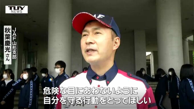 JAF山形支部・秋葉慶光さん「自転車を乗っている高校生も死角の部分はしっかり認識して頂いて危険な目に合わないように自分を守る行動をとって頂きたい」