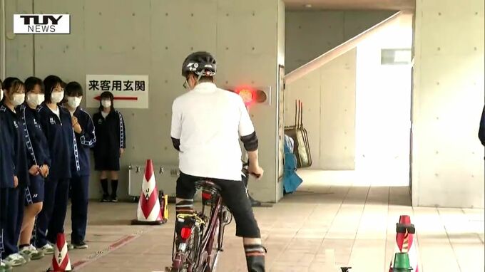 山形県鶴岡市の高校で安全に自転車に乗ってもらおうと、交通安全教室が開かれました。