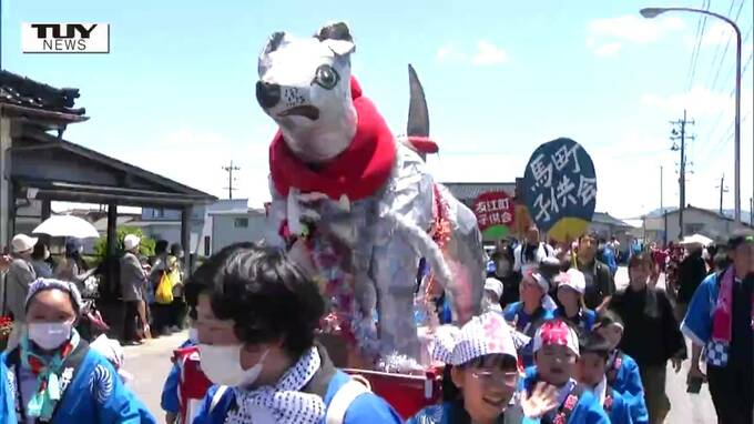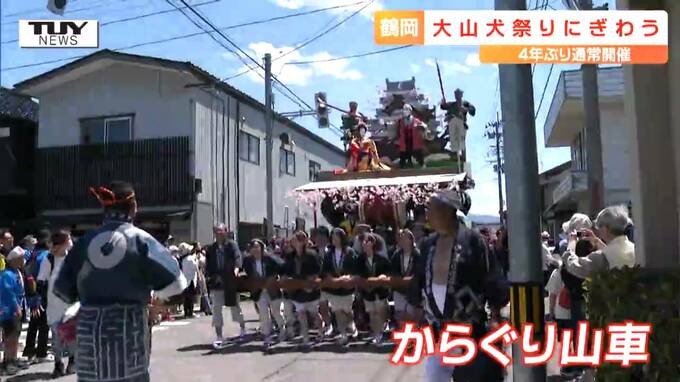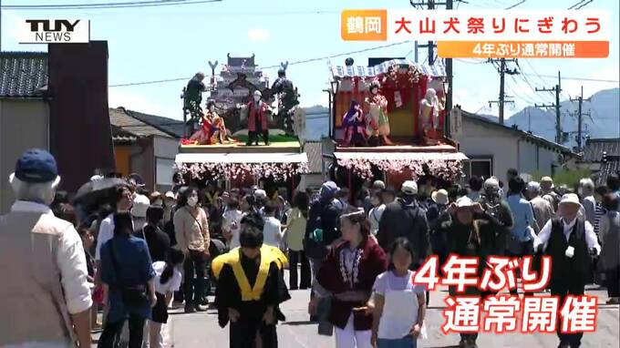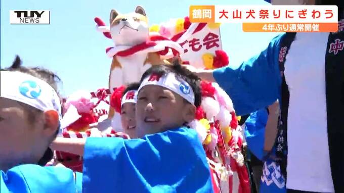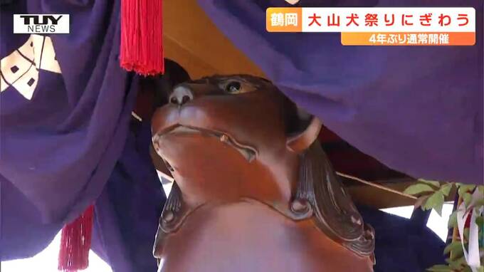 庄内三大まつりの一つ鶴岡市の大山犬祭りが5日行われ、神輿や山車行列が市内を練り歩きました。