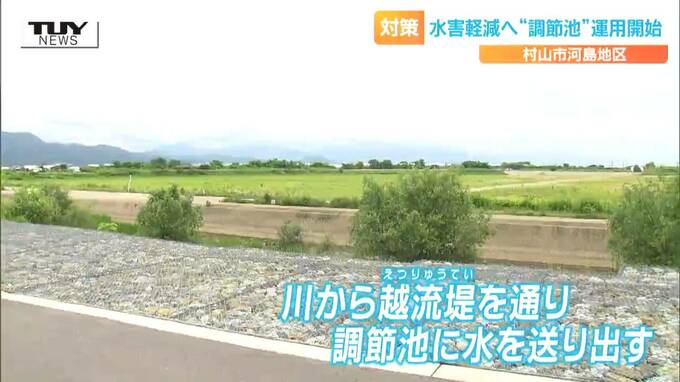 山形県が村山市の河島地区に建設を進めていた調節池が完成し、6月22日、運用が始まりました。