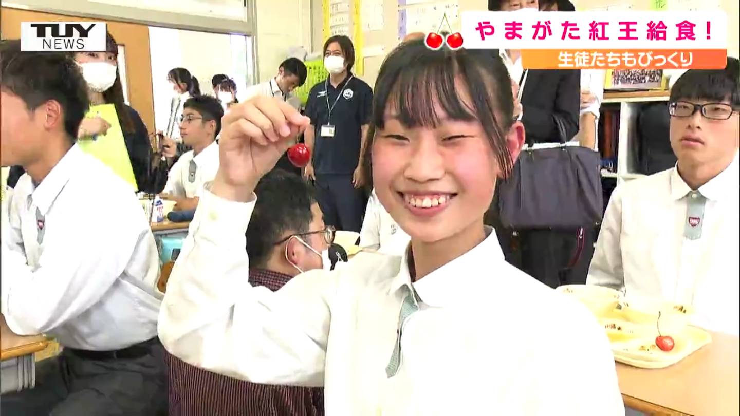 天童市の中学校で登場したのは「やまがた紅王」給食!