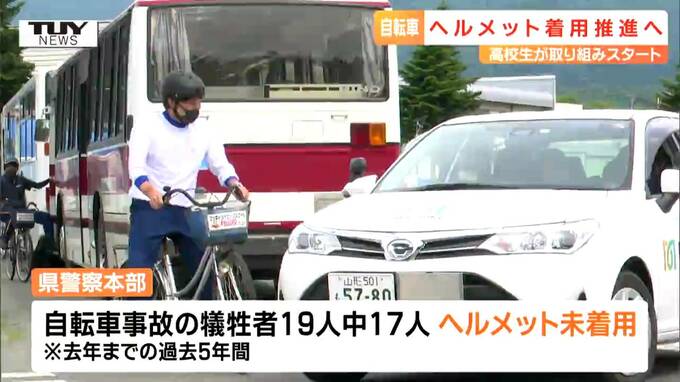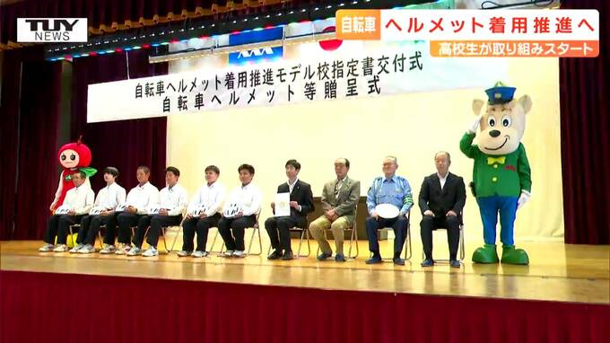こうした現状を受け、県や県警では、着用率が低い高校生が率先してヘルメットを着用することで、全体の着用率を上げようと、村山市の村山産業高校を「自転車ヘルメット着用推進モデル校」に指定しました。