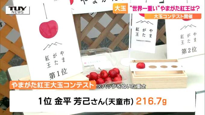 コンテストの結果、1位は天童市の金平芳己さんで、パックの重さを抜き、12粒の合計が216.7グラム大きさも500円玉をゆうに超えます。