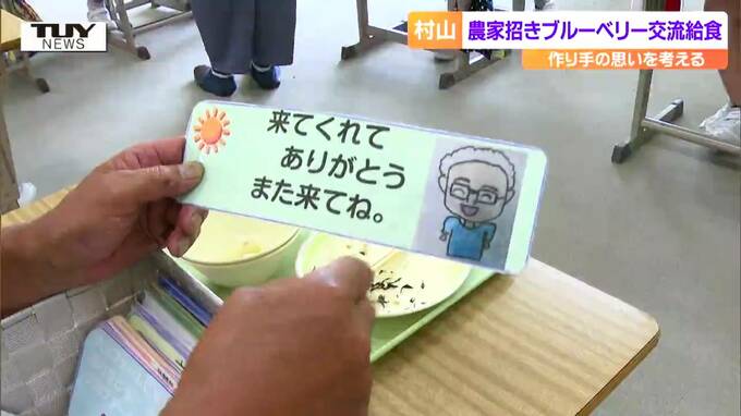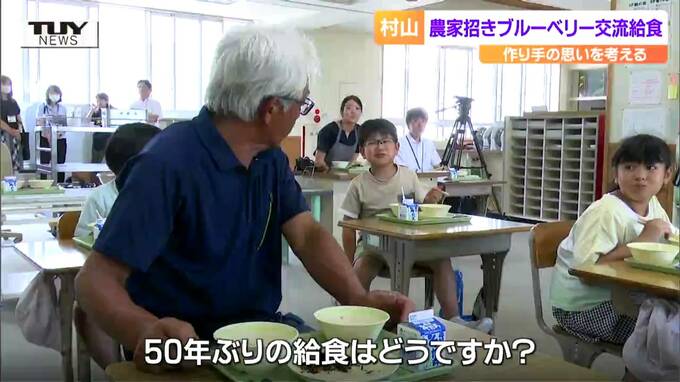 作り手の思いを知ってもらおうと、13日山形県村山市の小学校で農家を招いた、ブルーベリー交流給食が行われました。