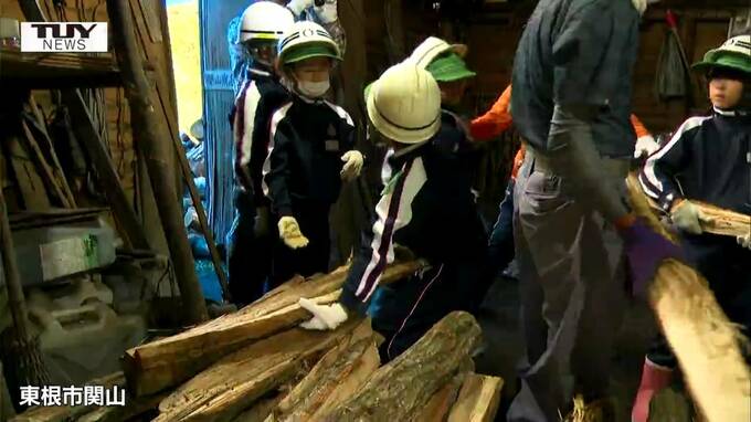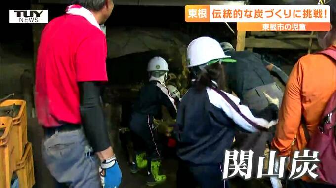 20日、地元の伝統的な炭づくりに山形県東根市の児童が挑戦しました。