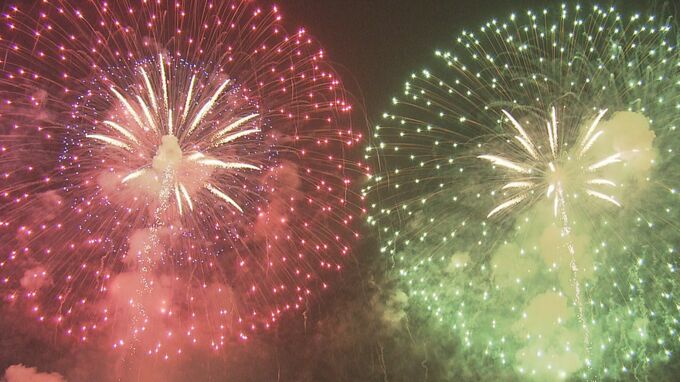 見物客:「すごかった4年ぶり。もう待ちに待った花火楽しかった。こどもと見ながら全部100点って楽しんでいた」