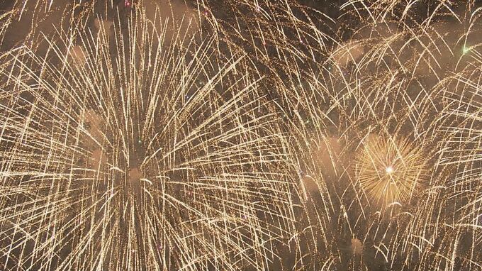 黄昏から漆黒へ…夜空を彩る花火の数々