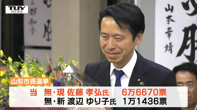 任期満了に伴い、10日投開票が行われた山形市長選挙は、現職の佐藤孝弘さんが新人との一騎打ちを制し、3回目の当選を果たしました。