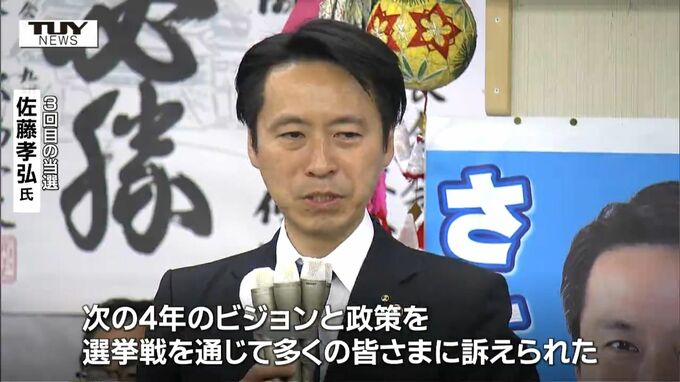 3回目の当選佐藤孝弘氏「公共交通のさらなる充実や経済の活性化、農業のさらなる振興、また将来の山形を担う人づくり、子育て、教育などに力を入れてやっていきたい」