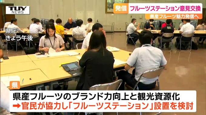県は県産フルーツのブランド力向上と観光資源活用のため、官民が協力した「フルーツステーション」の設置を検討しています。