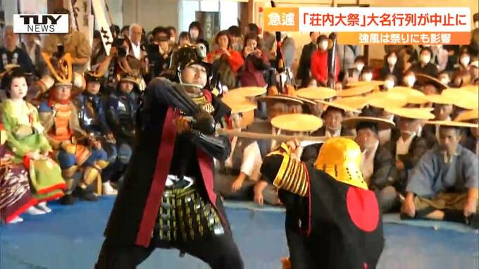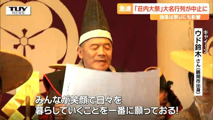 鶴岡市の祭りではプログラムの変更を余儀なくされました。