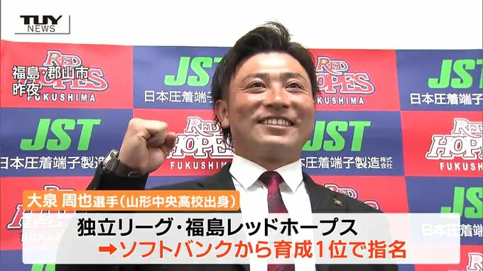 またきのうのドラフト会議では山形中央出身で独立リーグ福島レッドホープスでプレーする大泉周也選手がソフトバンクから育成1位で指名されました。