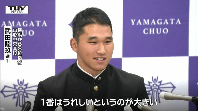 きのう行われたプロ野球のドラフト会議で、山形中央高校の武田陸玖選手が横浜から3位で指名を受けました。