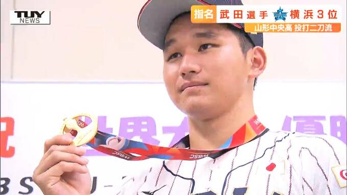 きのう行われたプロ野球のドラフト会議で、山形中央高校の武田陸玖選手が横浜DeNAベイスターズから3位で指名を受けました。
