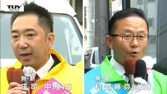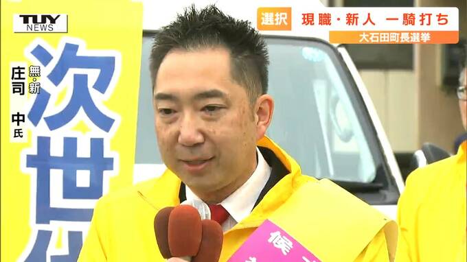 大石田町長選挙に立候補しているのは、届け出順に、前の町長の長男で無所属の新人、庄司中さんと2期目を目指す無所属の現職、村岡藤弥さんの2人です。