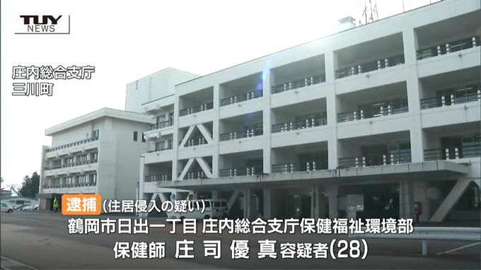 住居侵入の疑いで逮捕されたのは、鶴岡市日出一丁目に住む庄内総合支庁保健福祉環境部の保健師、庄司優真容疑者(28)です。