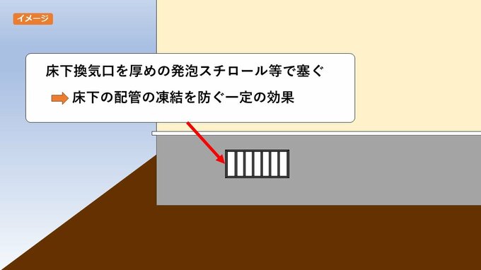また、住宅の床下の配管を保護するために、床下換気口を厚めの発砲スチロールの板で覆うことも一定の効果があるということです。