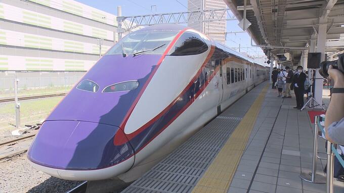 2014年、山形デスティネーションキャンペーンにあわせ、車体カラーが一新されました。深い紫色に先頭部のデザインは山形の県の鳥「おしどり」をモチーフに。帯には県の花の「紅花」をモチーフにした黄色と赤が使われ、雪をイメージした白色をバックに山形の彩り豊かな自然の恵みと新幹線のもつ躍動感が表現されました。車両は順次置き換えられ、2016年10月29日に銀色のつばさはラストランを迎えています。