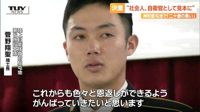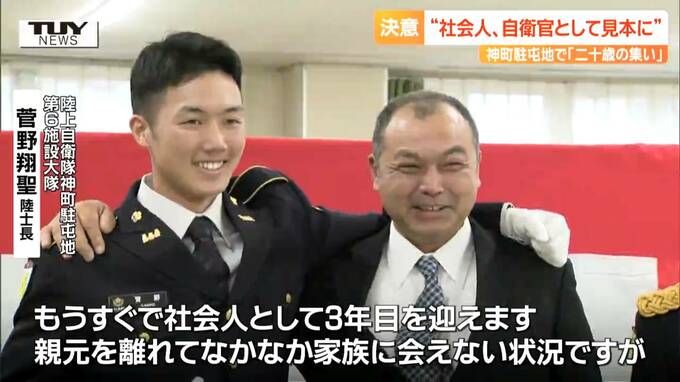 山形県東根市の神町駐屯地ではきょう、20歳を迎えた隊員を激励する「二十歳の集い」が行われました。