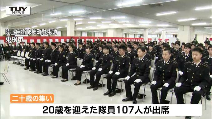 陸上自衛隊神町駐屯地ではきょう、20歳を迎えた隊員107人が『二十歳の集い』に臨みました。