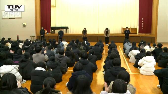 山形県酒田市の高校では、難関に挑む受験生を激励する出陣式が行われました。
