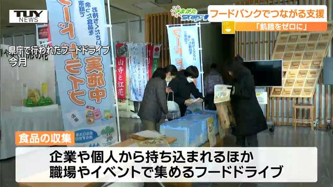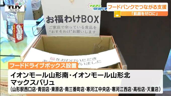 山形駅西口のスーパーでは、回収ボックスに入りきらないほどの食品が寄せられていました。