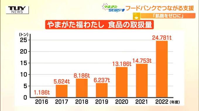活動への理解が広がり、食品の取扱量は初年度2016年度の1.1トンから2022年度は25トンにまで増えました。