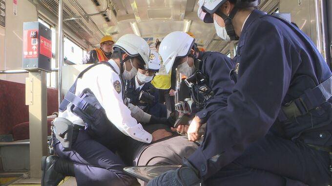 想定は、大勢の乗客が乗った走行中の列車内で、男が「人を刺して刑務所に入りたい」などと言い、乗客を次々と刺して人質に取るというものです。