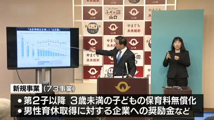 県最大の課題である人口減少の克服を掲げ、第2子以降の、3歳未満の子どもの保育料無償化や、男性の育休取得に対する企業への奨励金の支給など、73の新規事業を盛り込んでいます。
