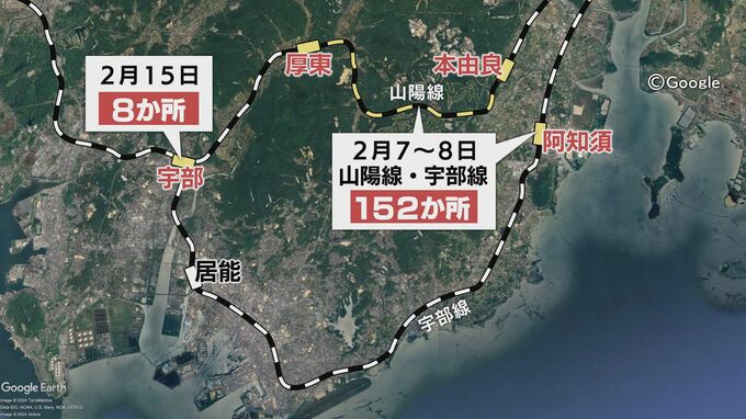 このケーブルは、電気を流すためにレールのつなぎ目に取り付けられる「レールボンド」と呼ばれるもので、2月7日から16日にかけて、山陽線と宇部線でおよそ220か所・450本が切断・持ち去られていることが発覚していました。