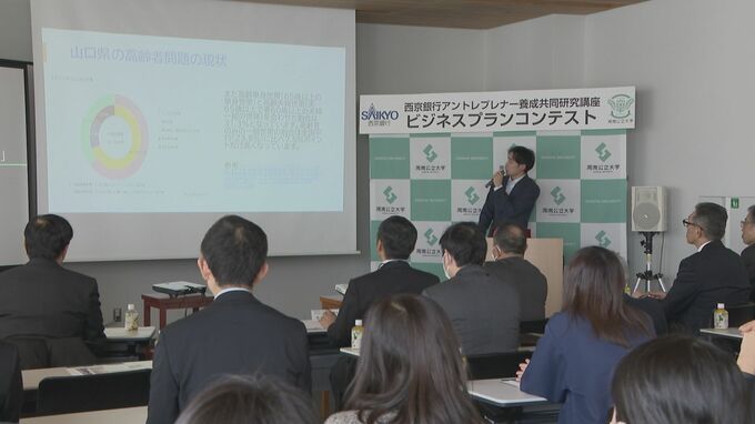 西京銀行では起業を目指す学生を応援し、人口や事業所の減少といった地域課題の解決につなげたいとしています。