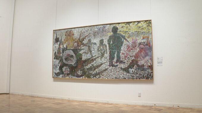 最高賞にあたる大賞を受賞したのは、山口市の画家・井岡義朋さんの「鬼哭啾啾(きこくしゅうしゅう)」です。この作品は幅3メートルを超える大作で、戦争や紛争などの悲劇を独自の感性で表現しています。