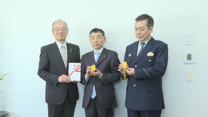 安全に登下校できるようにと、周南市の小学校に来月入学する新1年生に、防犯ブザー1000個が贈られました。