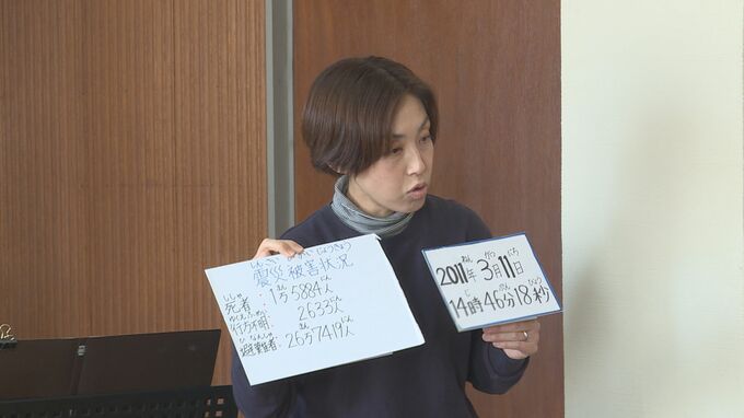 きょうは園児14人が、津波などでおよそ1万6000人が亡くなったことや、住んでいた町に戻れず今も避難生活を送る人がいることを聞きました。