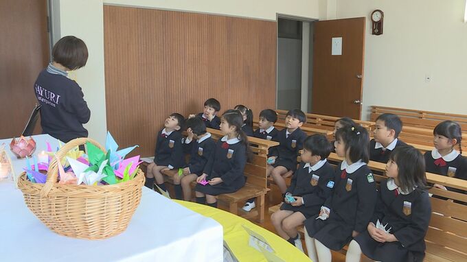 宇部さゆり幼稚園では、20年ほど前から阪神・淡路大震災や東日本大震災の起こった日に、園児たちが犠牲者に祈りを捧げる活動をしています。