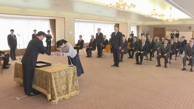 今年から県では定年が61歳となり、60歳の節目に退職する人や早期退職を選んだ56人が県庁での最後の日を迎えました。