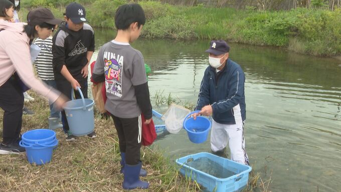 自然に親しんでもらおうと山口市の椹野川で子どもたちがアユの稚魚を放流しました。