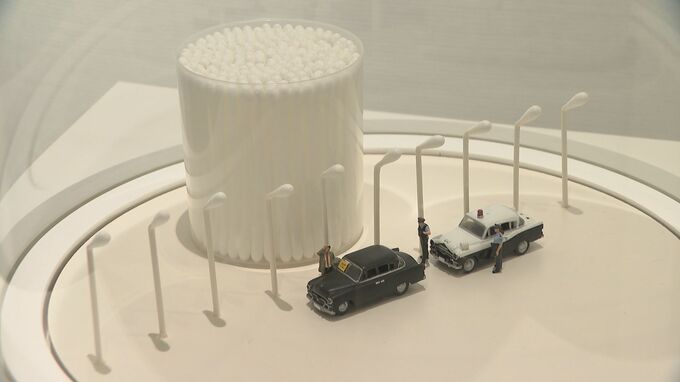 「こちらの作品。綿棒が街灯に見立てられ、その下で黒い車が警察に捕まっていますね。この作品、タイトルはいったい何でしょうか?」