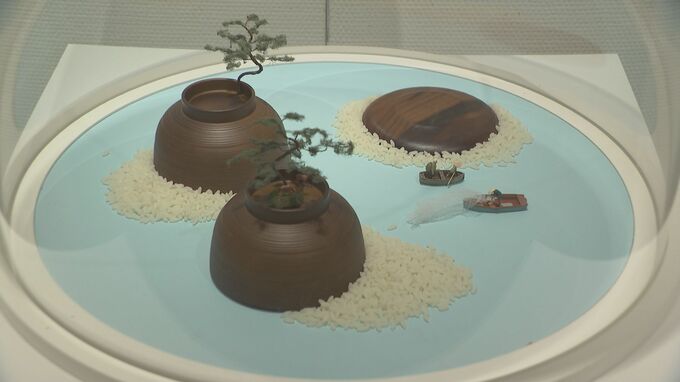 「米の作品も、2500分の1スケールの飛行機を置くことで、コメが雲に見えてきますし、となりの作品は砂浜になっているんです、そっちだと人形が2センチ位の作品だったりするので、同じコメでも表現の仕方が変わるというのがすごくわかりやすいかなと」